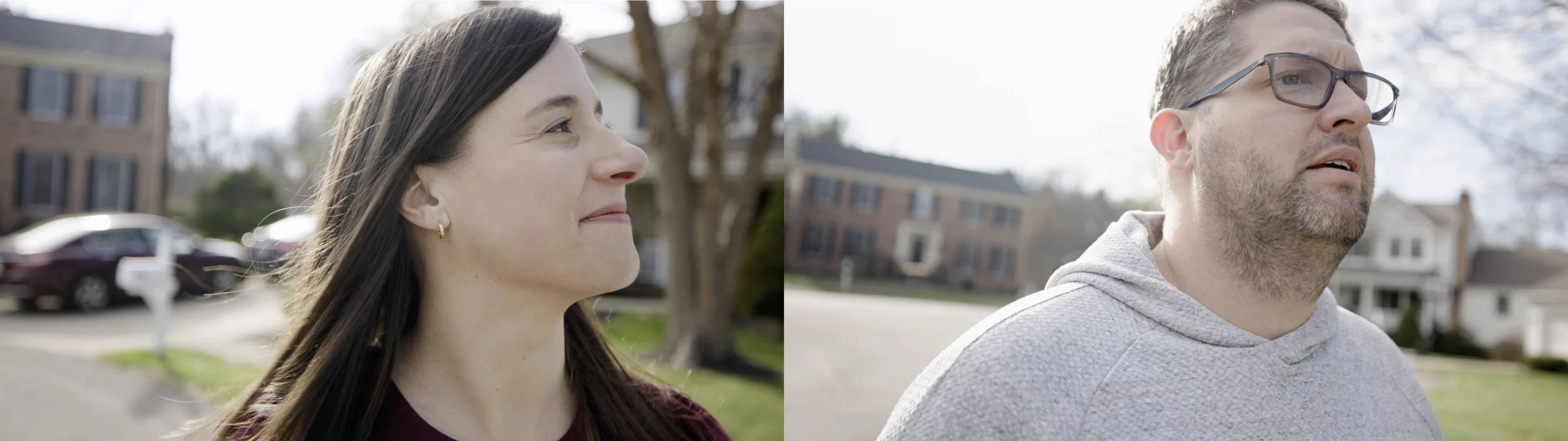 Split screen comes in at moments of drama and resonance. It is motivated by content, not by a design template. Between those moments, we let the full frame breathe.