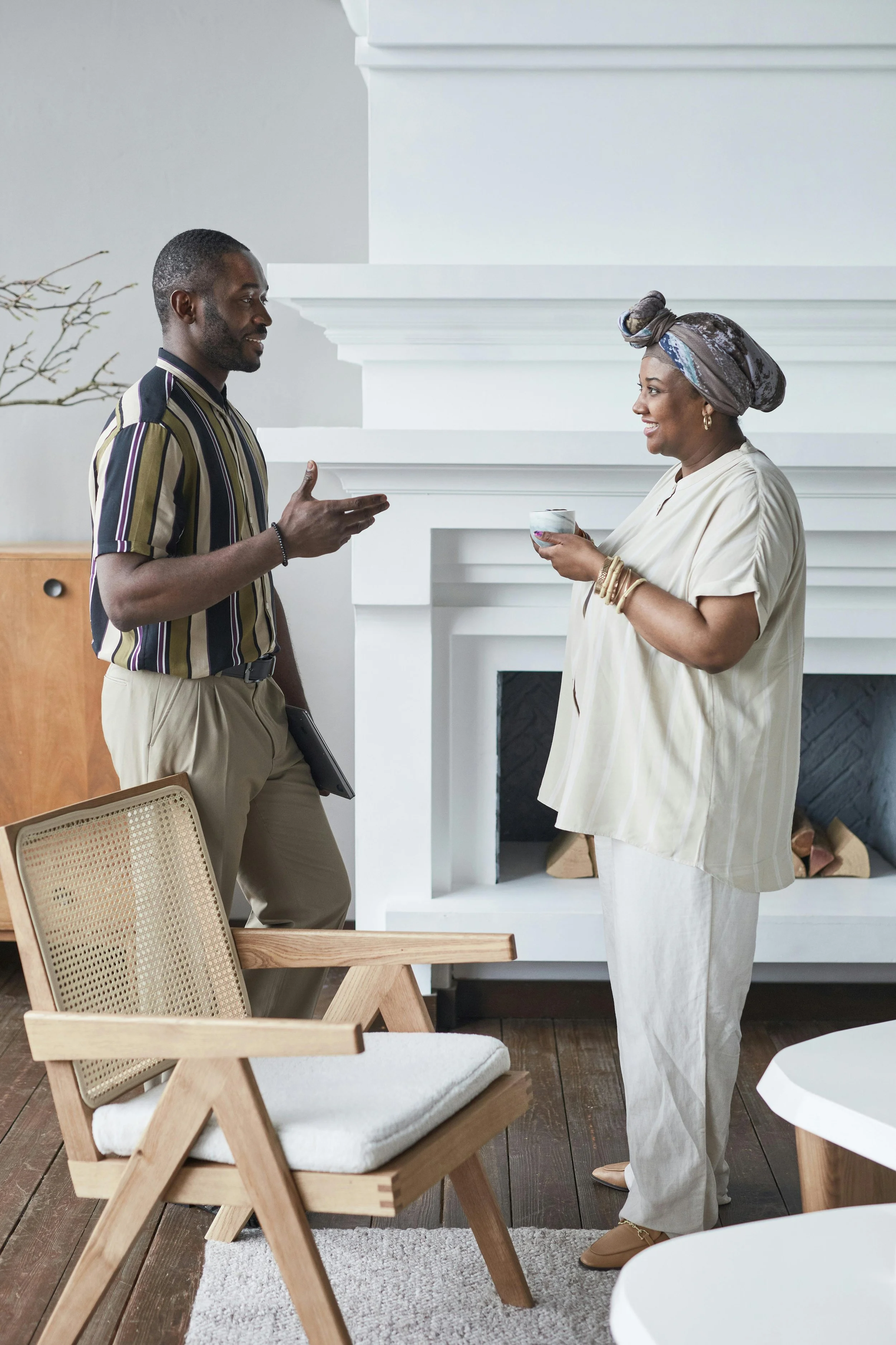 At the end of the main conversation, we bring them together casually — standing near the table, the formality of the shoot behind them — and ask what surprised them about each other. What they didn't expect. What they're carrying away. We used this format in our recent IgAN story with Byron and Melissa Wade and it carried extraordinary warmth and weight.